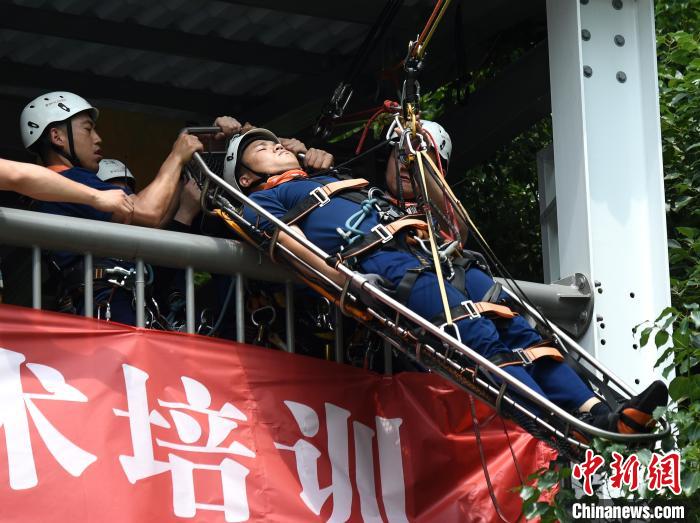 圖為消防員在參加繩索救援技術(shù)培訓(xùn)。王金秋攝