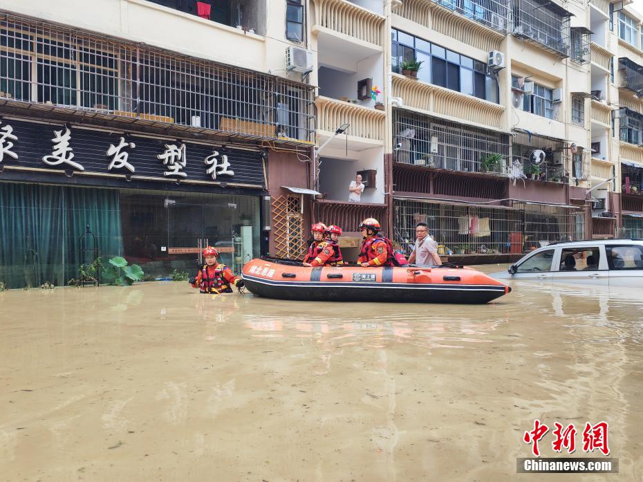 6月30日晚至7月1日,湖北省咸豐縣遭遇暴雨襲擊,12小時(shí)降雨量突破300毫米,刷新當(dāng)?shù)貑稳战涤陿O值。受強(qiáng)降雨影響,咸豐縣城出現(xiàn)內(nèi)澇。消防救援部門迅速響應(yīng),調(diào)派125名消防救援人員,出動(dòng)22臺(tái)消防車、11艘舟艇,攜帶救援繩、救生衣等抗洪搶險(xiǎn)救援裝備,趕赴高樂山鎮(zhèn)、曲江鎮(zhèn)等地進(jìn)行救援。截至7月1日中午12時(shí),消防、公安等救援力量已緊急轉(zhuǎn)移受災(zāi)群眾1.8萬余人。圖為消防救援人員緊急轉(zhuǎn)移受災(zāi)群眾。