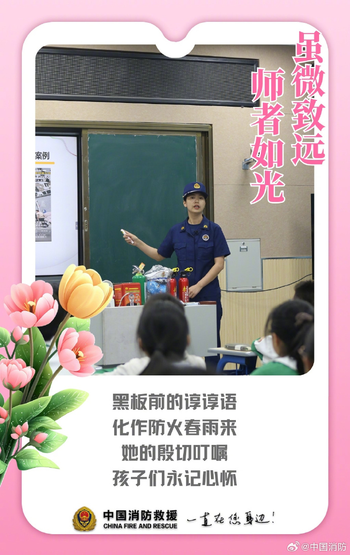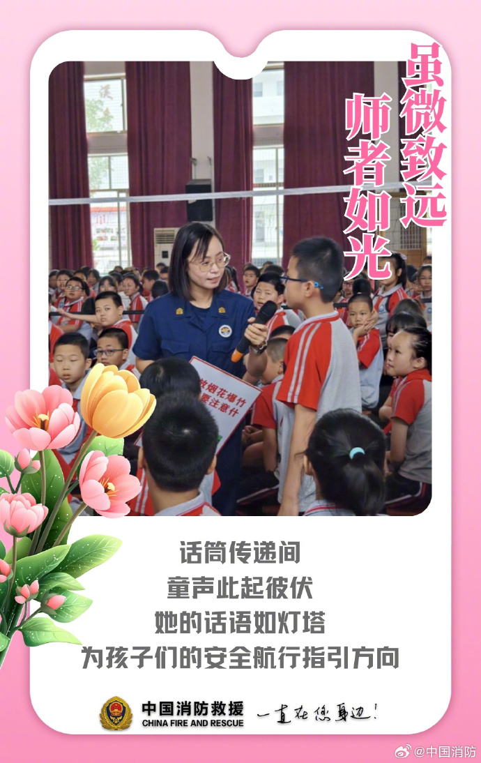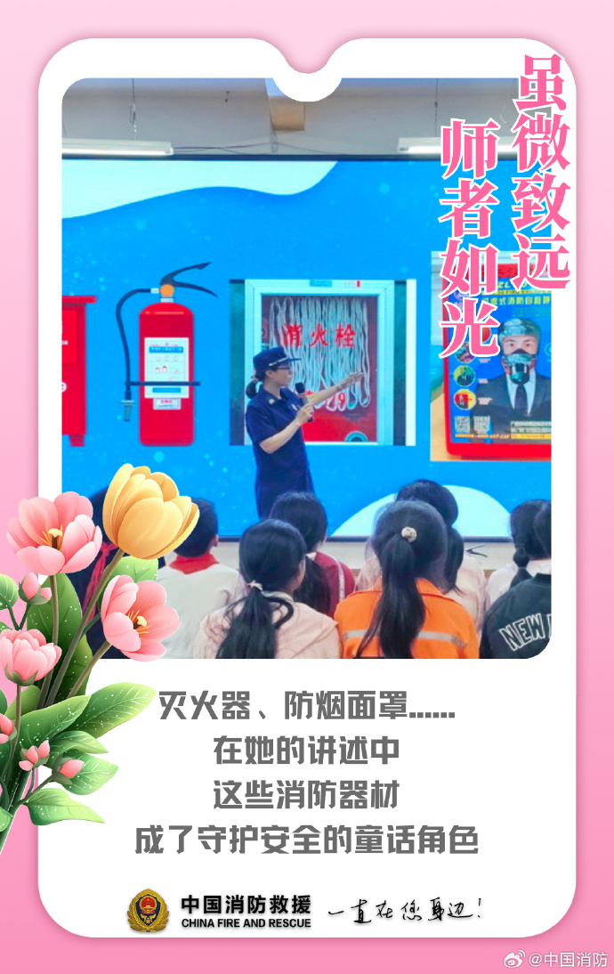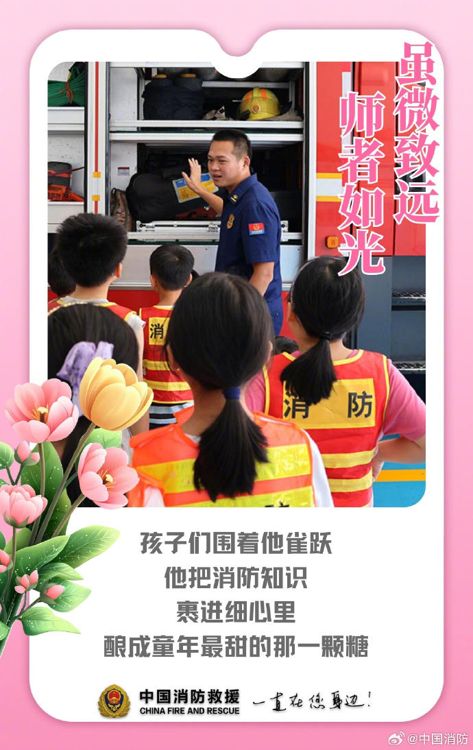 師者如光,雖微致遠(yuǎn)。今天是教師節(jié),一起對(duì)老師們說一聲,節(jié)日快樂!你知道嗎?在火焰藍(lán)隊(duì)伍里有這樣一群特殊的“老師”,他們是消防知識(shí)的傳播者!他們把消防知識(shí)變生動(dòng),宣講、分析、實(shí)操教學(xué)樣樣行,用獨(dú)特方式守護(hù)萬家,讓安心多一分,危險(xiǎn)少一分~