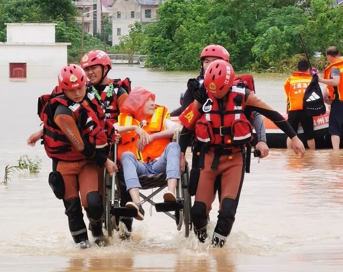 瑞金市消防救援大隊(duì)的隊(duì)員救援被困群眾(資料圖片)