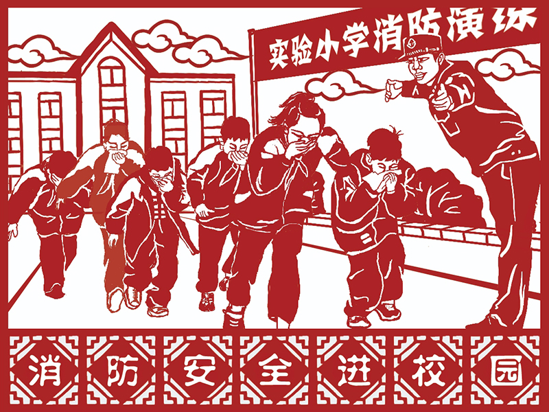 遼源市消防救援支隊打造“非遺+消防”的新型宣傳模式,邀請吉林省民間文藝家協(xié)會會員、遼源市民間文藝家協(xié)會常務(wù)副主席、秘書長岳金林進行創(chuàng)作,將剪紙藝術(shù)與消防元素相結(jié)合,巧妙構(gòu)思細致創(chuàng)作,使得人物、樹木、建筑等形象躍然紙上,栩栩如生。目前,已完成消防宣傳“五進”系列的設(shè)計制作:《消防宣傳“進家庭”》作品描繪了消防宣傳員到居民家中幫助排查廚房火災(zāi)隱患,把安全傳遞到千家萬戶;《消防宣傳“進農(nóng)村”》作品中,村民們圍在消防宣傳員身旁,學(xué)習(xí)如何正確使用消防應(yīng)急箱;《消防宣傳“進企業(yè)”》作品刻畫了企業(yè)員工開展滅火實操演練的場景,突出生產(chǎn)與安全兩手抓的主題;《消防宣傳“進社區(qū)”》作品呈現(xiàn)了消防宣傳員走街串巷向電動車使用者講解著電動車停放與充電的注意事項;《消防宣傳“進校園”》作品中消防宣傳員走進校園指導(dǎo)疏散逃生演練,教育一個孩子、帶動一個家庭、影響整個社會。