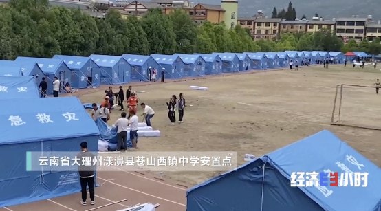 漾濞縣扶貧辦主任趙志輝介紹說,雖然此次地震中,倒塌的房屋并不算多,但有大量房屋已經嚴重開裂、損毀,已經不具備居住條件。當?shù)卣呀浽诳h城緊急啟動了5個集中避難安置點,安置受災群眾。