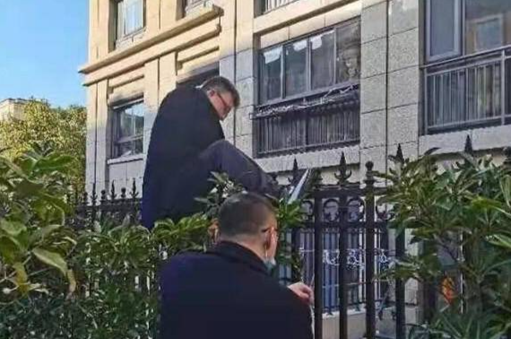 物業(yè)人員翻越護欄排險,原來是業(yè)主老奶奶,忘記灶臺上還煮著花生米,居然睡著了。