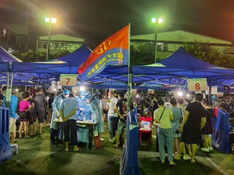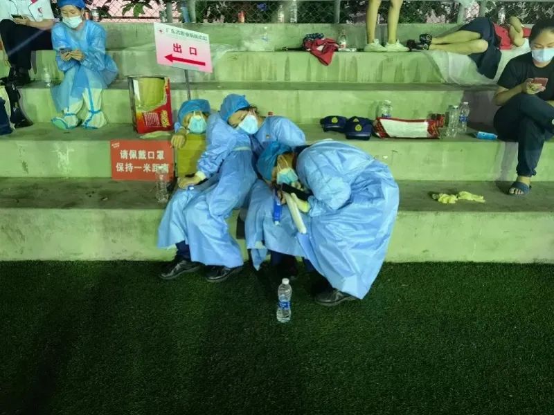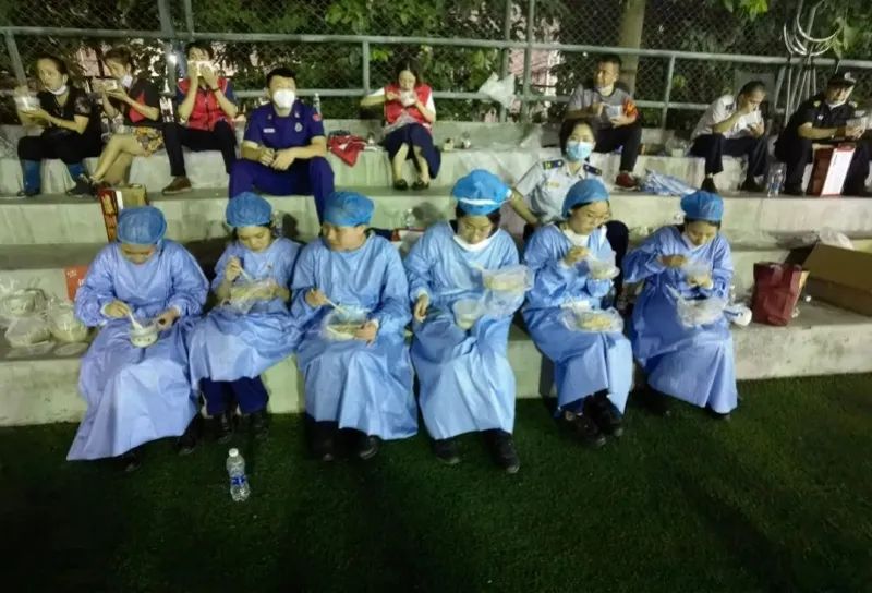 消防志愿隊(duì)伍奔赴海珠區(qū)6個(gè)核酸檢測(cè)點(diǎn),身著防護(hù)裝備,引導(dǎo)群眾有序排隊(duì),耐心解答群眾提出的問題。連夜作戰(zhàn),餓了就在附近迅速吃一個(gè)盒飯,困了就相互依靠小睡一會(huì)兒。