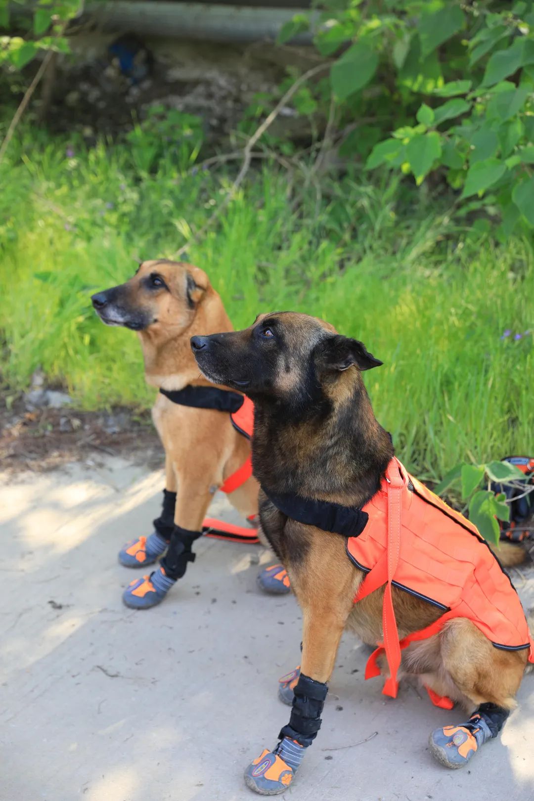 這樣的訓(xùn)練每天都在進(jìn)行。從清晨開始,火球般的太陽炙烤著大地 ,樹木被烤著耷拉著頭,搜救犬在樹蔭下,吐著可愛的舌頭。