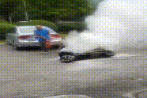 但是,電動(dòng)自行車燃燒速度太快,眼看一罐干粉滅火器就要用完火勢(shì)還沒(méi)有被完全撲滅。
