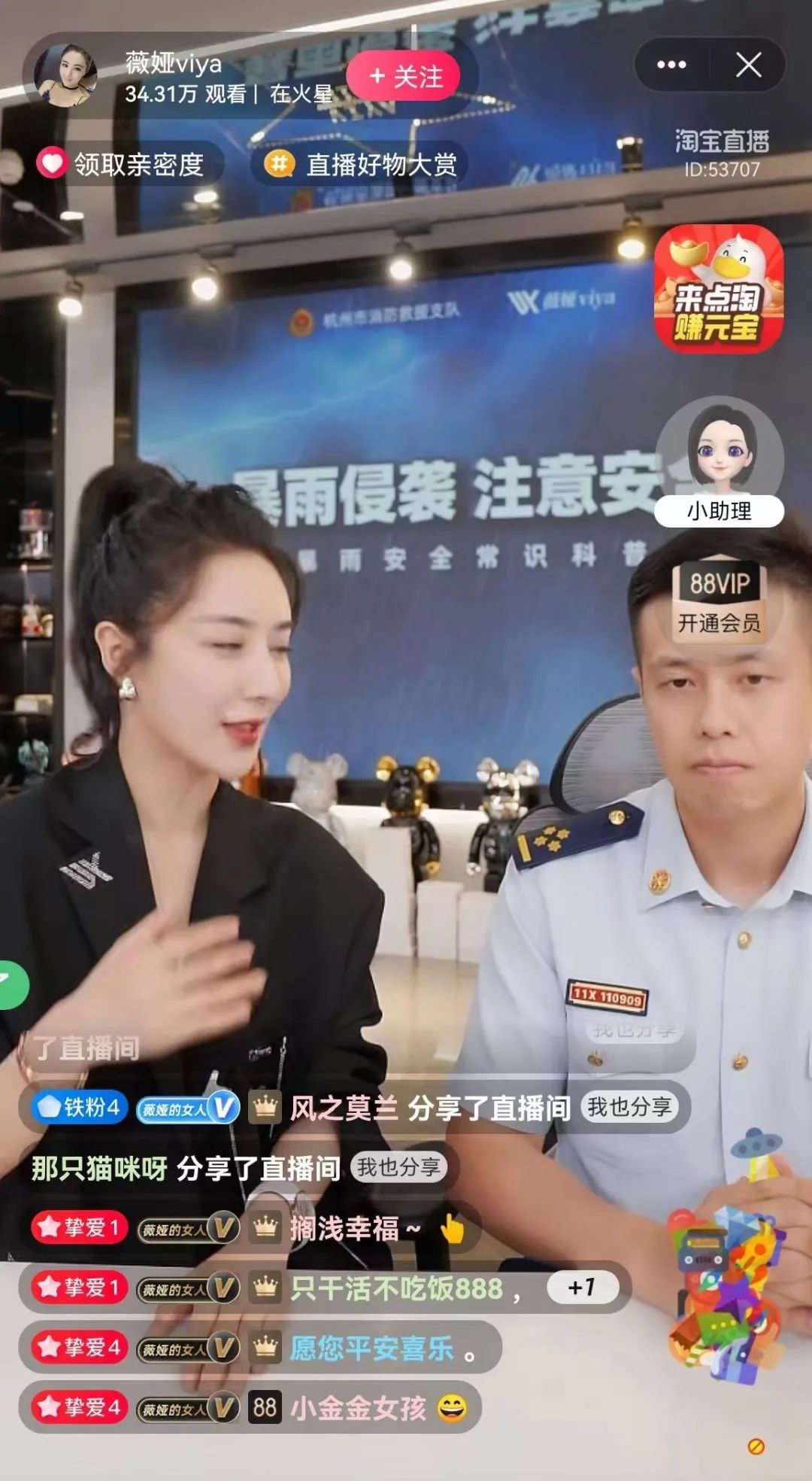 近日,浙江省杭州市消防救援支隊江干大隊副大隊長章一立走進“薇婭”直播間,通過與知名主播互動,在線直播《暴雨侵襲,注意安全》 常識科普,為廣大網(wǎng)友普及暴雨安全常識。