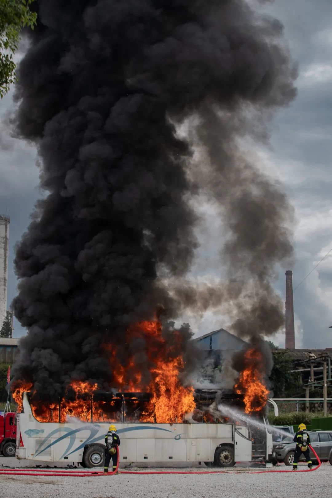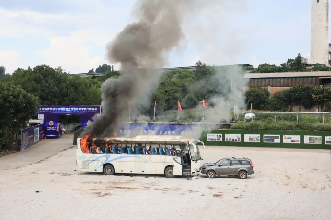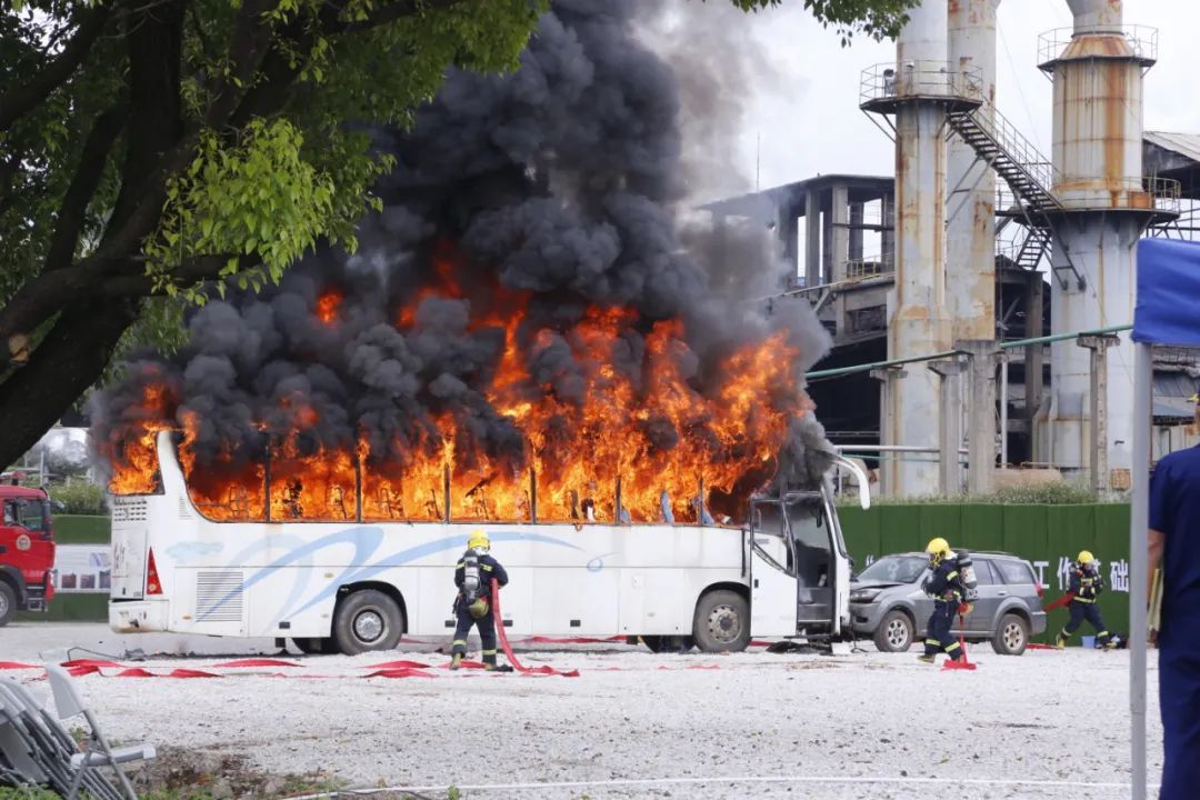 由于客車連續(xù)運(yùn)行時間長,易因車輛故障發(fā)生自燃,火災(zāi)突發(fā)性強(qiáng)。有時會有乘客攜帶易燃易爆品上車未被發(fā)現(xiàn),存在燃燒爆炸的潛在風(fēng)險。同時由于客車空間密閉,發(fā)生火災(zāi)時有毒煙氣在車內(nèi)迅速聚積,易造成人員中毒、窒息,而且客車載客量大,疏散途徑少,人員逃生困難,易造成重大人員傷亡和惡劣社會影響。此次協(xié)作展示,針對性強(qiáng),意義重大。