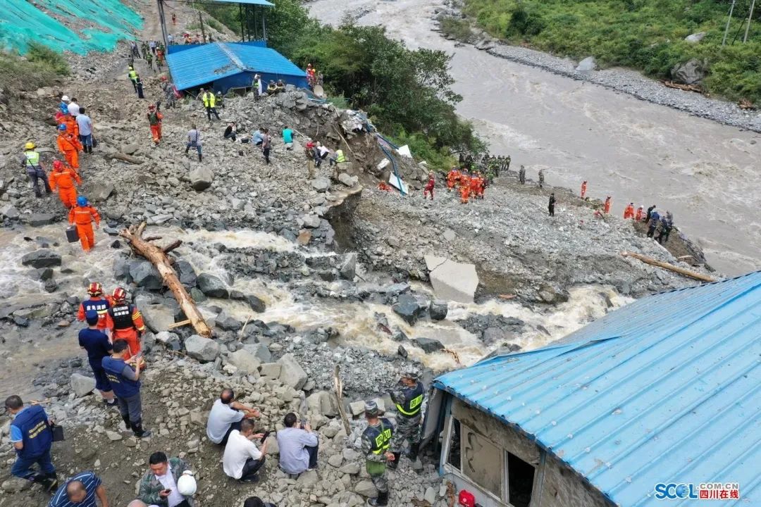目前,受災(zāi)現(xiàn)場(chǎng)一處板房被沖毀一段,河面水勢(shì)洶涌,救援隊(duì)伍正利用生命探測(cè)儀、搜救犬等救援裝備開(kāi)展搜索和救援作業(yè)。