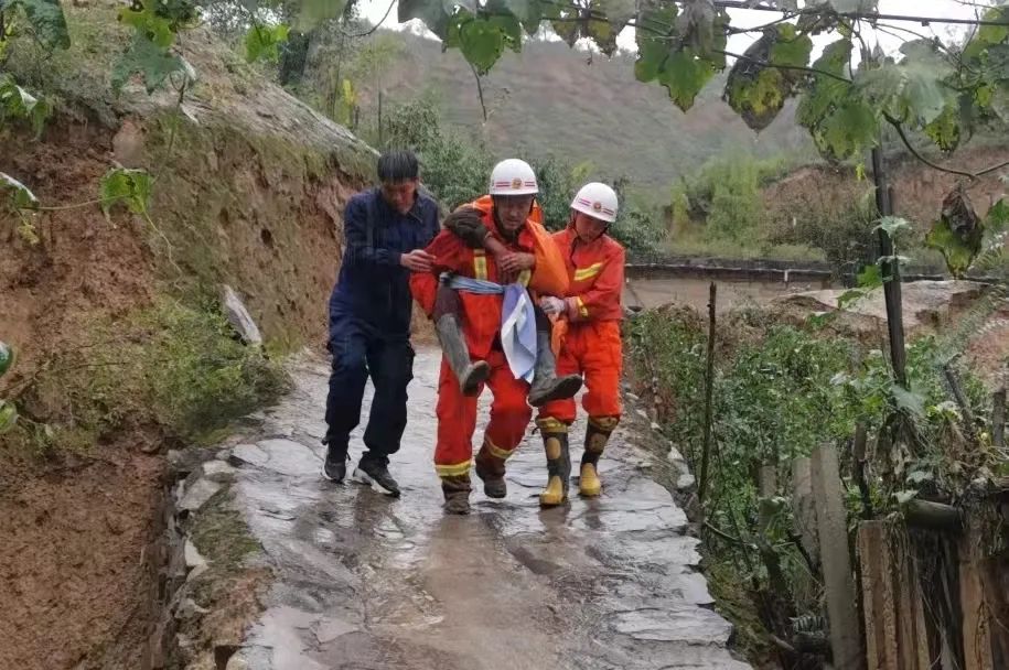 晉中介休市韓屯村附近兩人被困一處低洼積水路段,晉中消防指戰(zhàn)員迅速到場,冒雨將兩人成功轉(zhuǎn)移至安全區(qū)域。