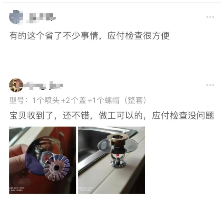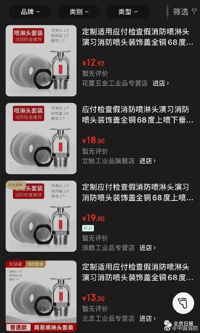 網(wǎng)購平臺(tái)售賣假消防物品,還有買家秀,淘寶、京東和拼多多平臺(tái)上,多家店鋪因售賣名為,“應(yīng)付檢查假消防噴淋頭”的物品。被@中國消防點(diǎn)名批評(píng): “應(yīng)付二字赫然在,違法當(dāng)做噱頭賣,生命安全成兒戲,最后你是把誰害?”