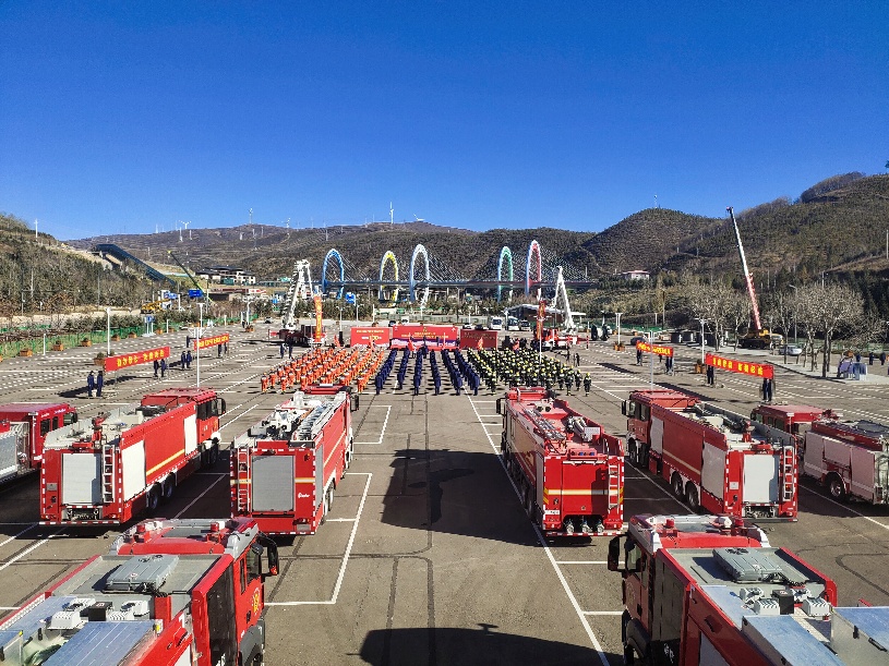 圖為冬奧倒計時百天消防安保誓師大會現(xiàn)場。