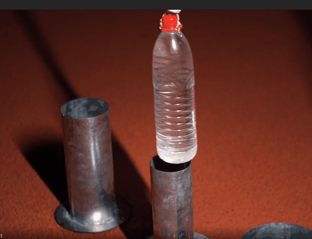 操作懸掛礦泉水瓶的無人機,飛至鐵筒上方將礦泉水瓶完全放至鐵筒內(nèi)。