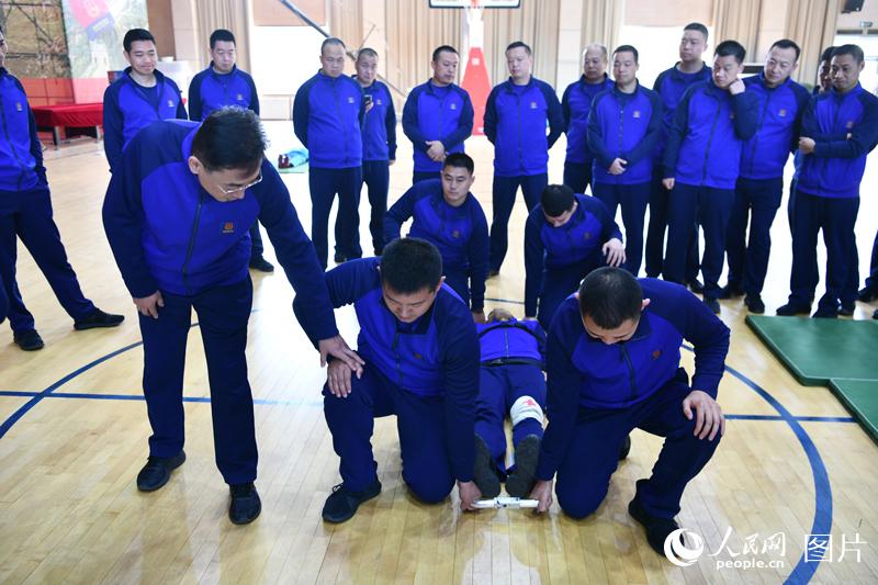 圖為教員進(jìn)行救援實(shí)際操作講解。人民網(wǎng)記者 何淼攝