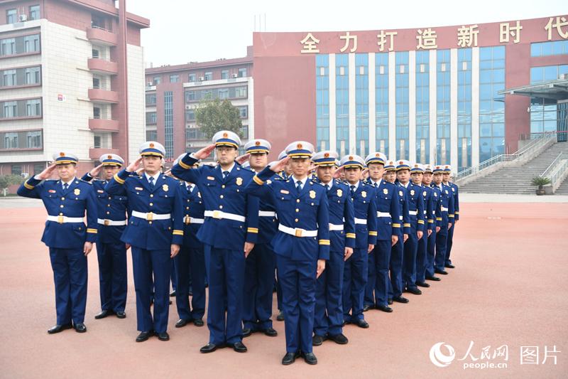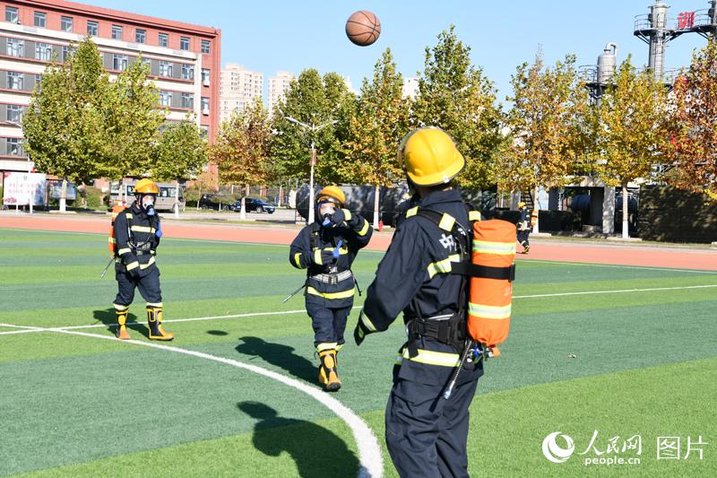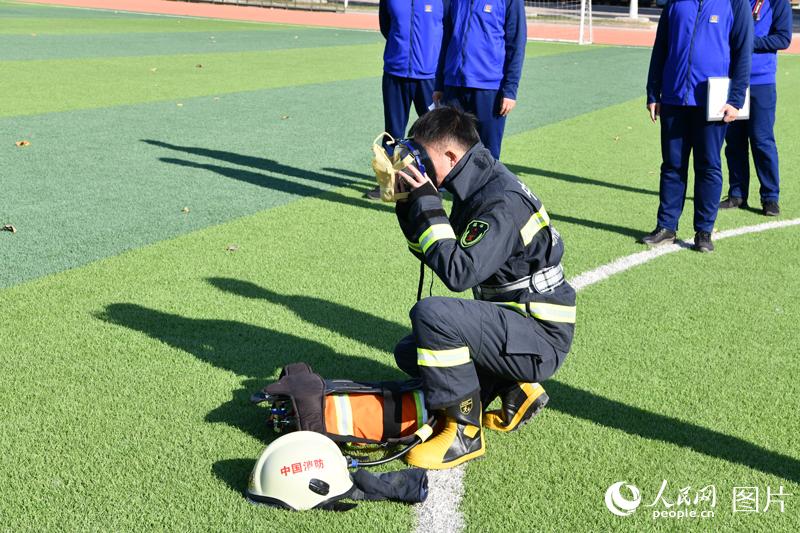 圖為教員進(jìn)行空氣呼吸器穿戴講解。人民網(wǎng)記者 何淼攝