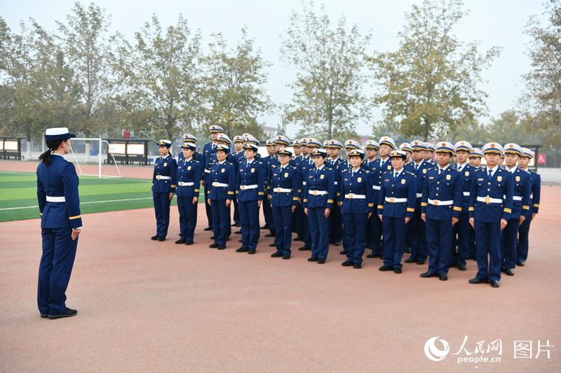 圖為學(xué)員進(jìn)行早操隊(duì)列訓(xùn)練。人民網(wǎng)記者 何淼攝