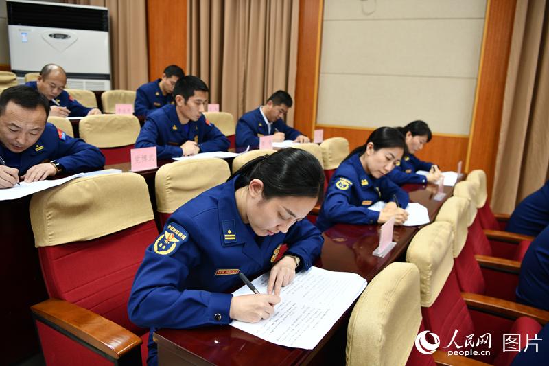 圖為學(xué)員進(jìn)行消防救援理論學(xué)習(xí)。人民網(wǎng)記者 何淼攝