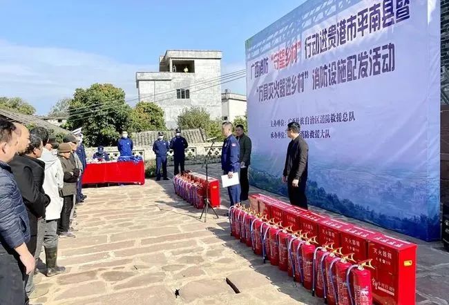 桂平:配發(fā)消防器材 守望平安鄉(xiāng)村