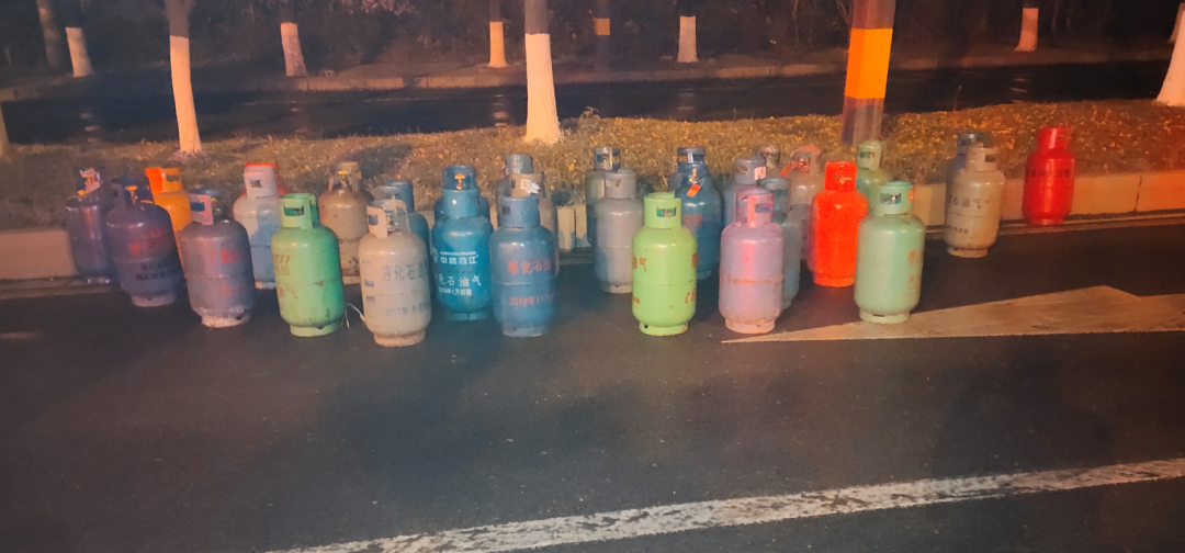 在破拆嚴(yán)重受損的面包車門后消防人員發(fā)現(xiàn),面包車內(nèi)竟裝載了37個(gè)液化氣罐,連副駕駛車座上都放置了氣罐而且其中一罐已經(jīng)泄漏!