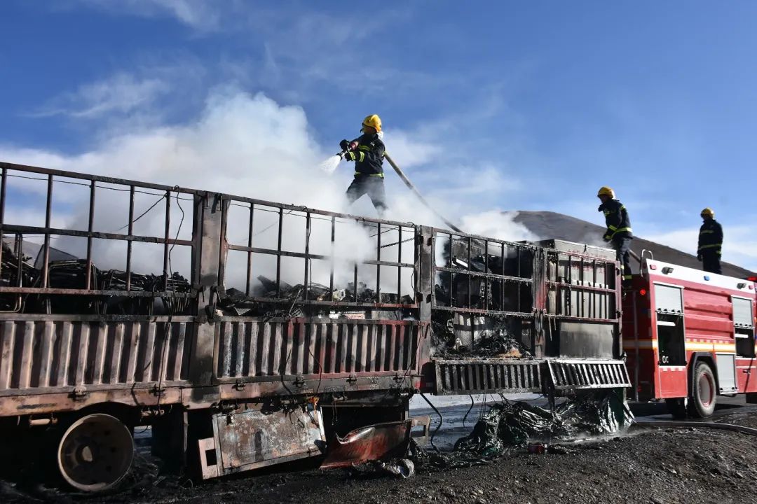安多縣消防救援大隊接警后,7 名指戰(zhàn)員在大隊長徐新昕的帶領(lǐng)下,迅速趕往現(xiàn)場。