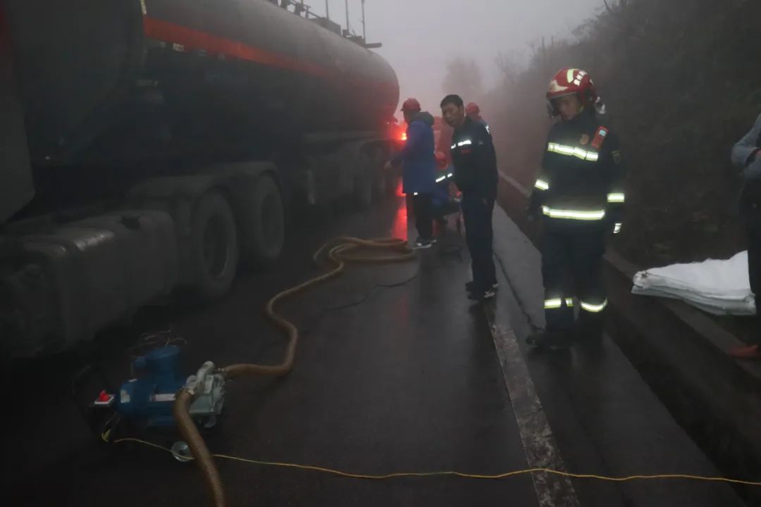 大霧天超車相撞,33.5噸汽油罐車泄漏
