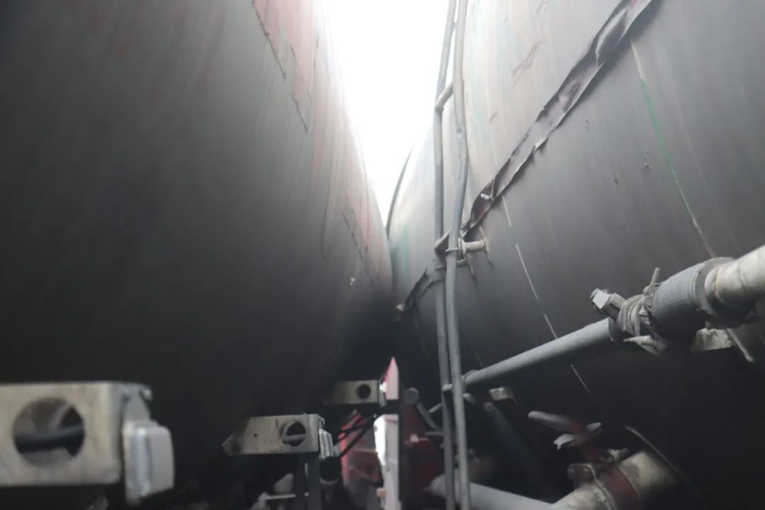 三車不同程度受損,所幸現(xiàn)場無人員傷亡。但油罐車罐體內(nèi)的汽油已經(jīng)發(fā)生少量泄漏,距離事發(fā)地不遠處便是民房,如處置不當,可能嚴重危及周邊居民安全。