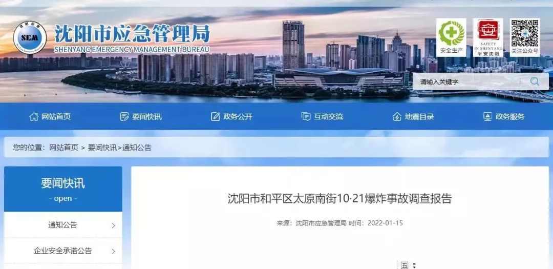 1月15日,沈陽市應(yīng)急管理局官方網(wǎng)站發(fā)布沈陽市和平區(qū)太原南街管道燃?xì)庑孤┍ㄊ鹿收{(diào)查報(bào)告。