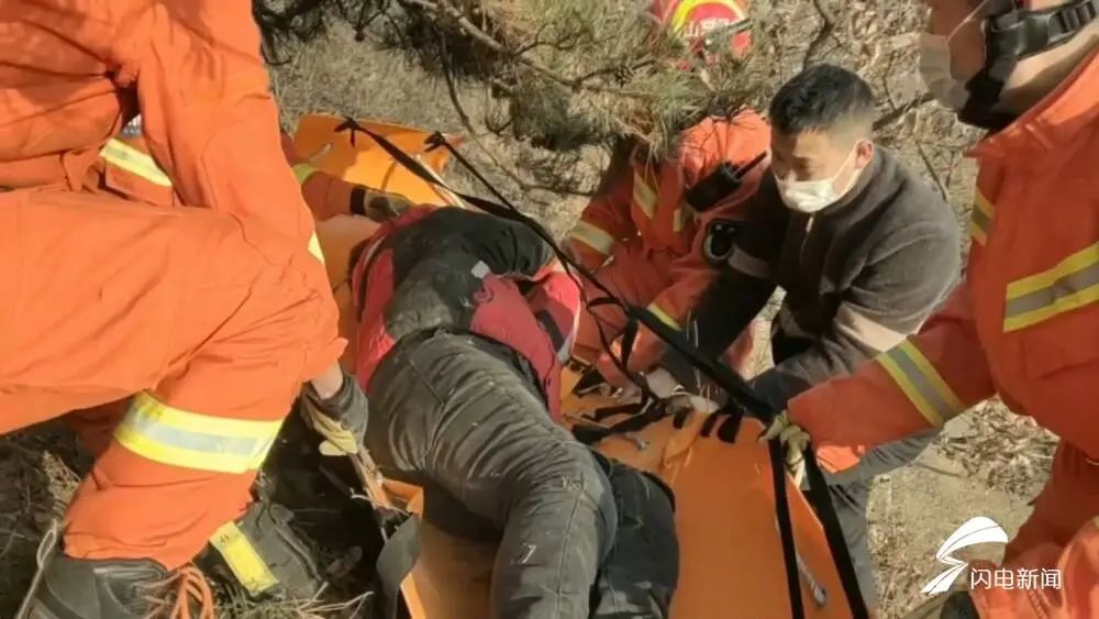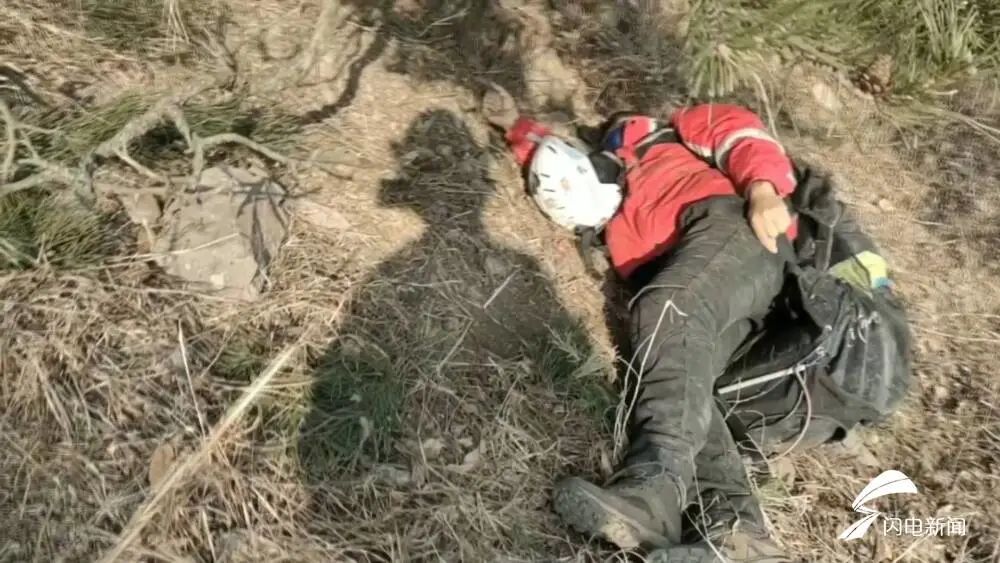 1月18日,山東濰坊諸城市,一男子在飛滑翔傘時,遇到強風,摔在了半山腰,多處骨折無法動彈。