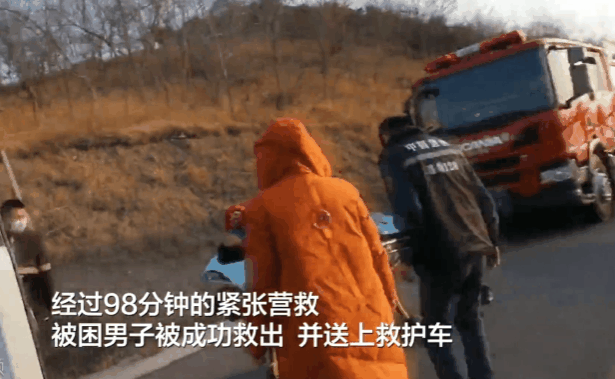 經(jīng)過98分鐘的緊張營救,男子被轉(zhuǎn)移到安全地帶,并被送上救護車。目前,該男子正在進一步治療中。