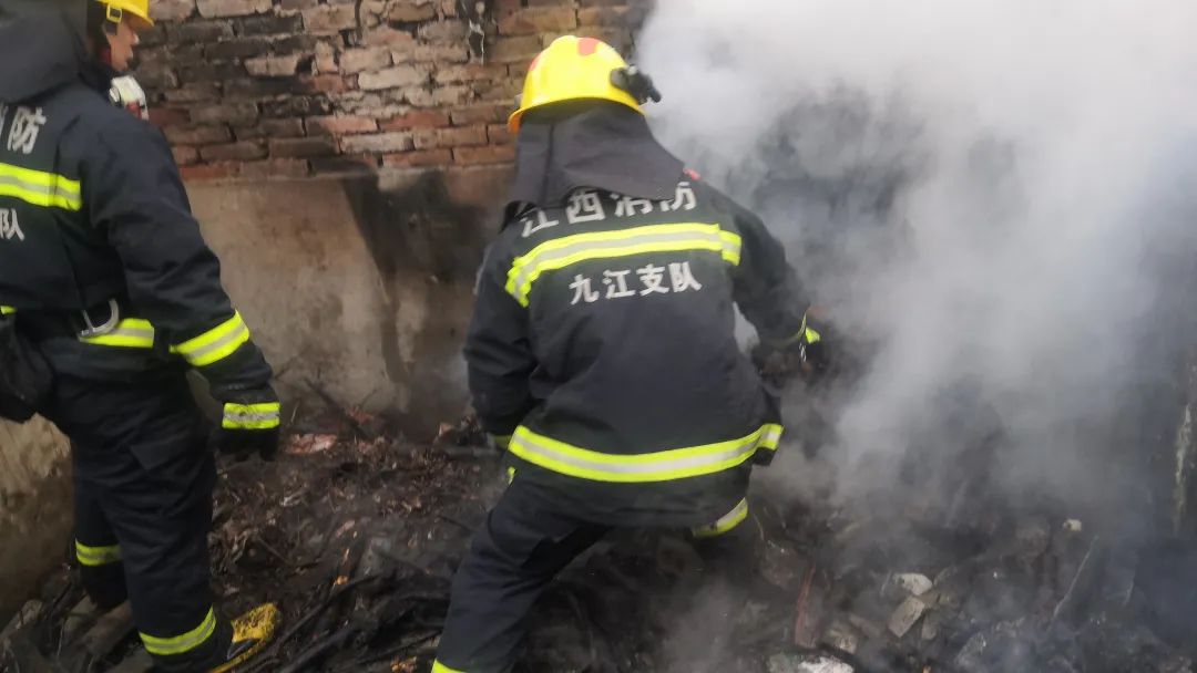 2月10日,江西九江永修縣一戶人家的豬圈起火,接警后,消防員立即趕赴現(xiàn)場。