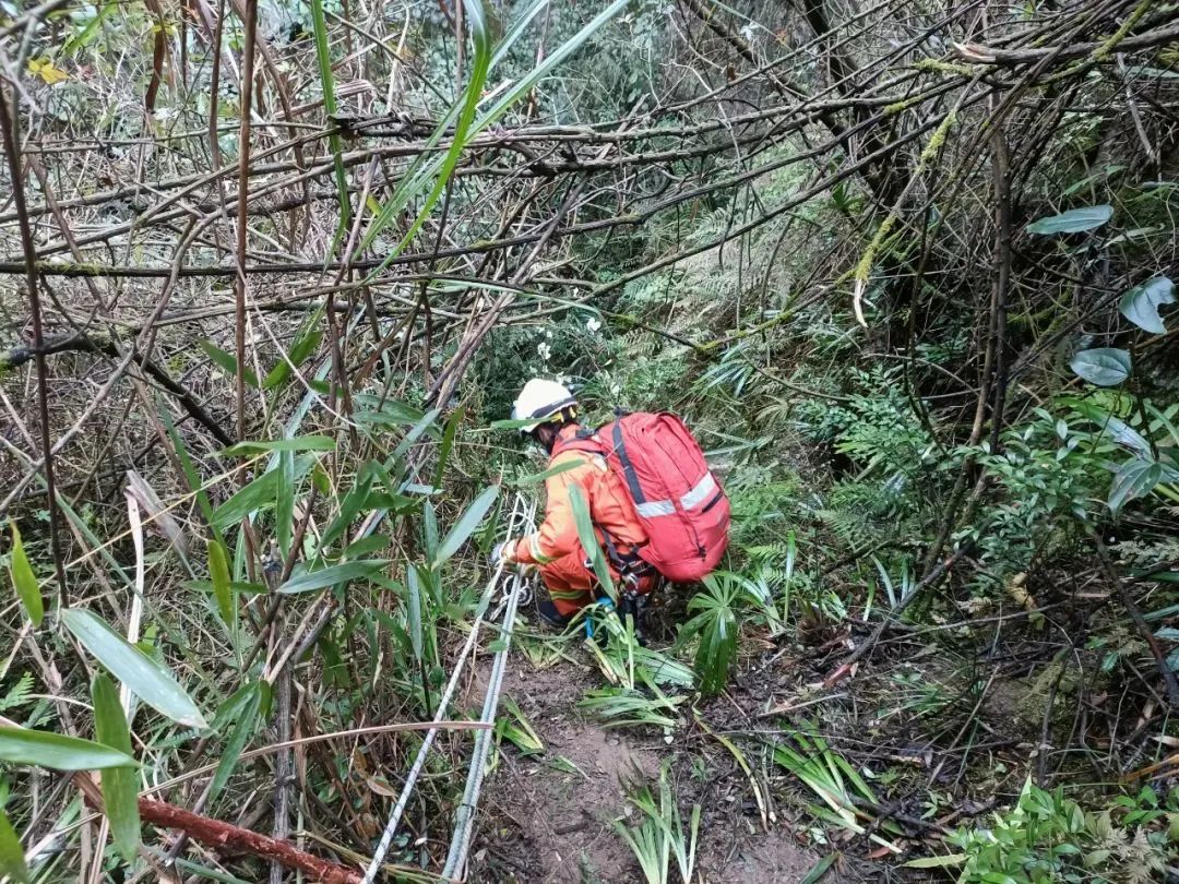 由于洞穴位置距離村子較遠(yuǎn)且車輛無法通行,消防救援人員徒步行走近4公里后抵達(dá)現(xiàn)場。