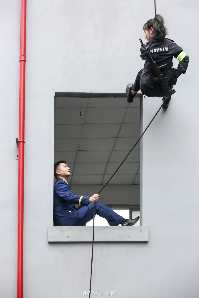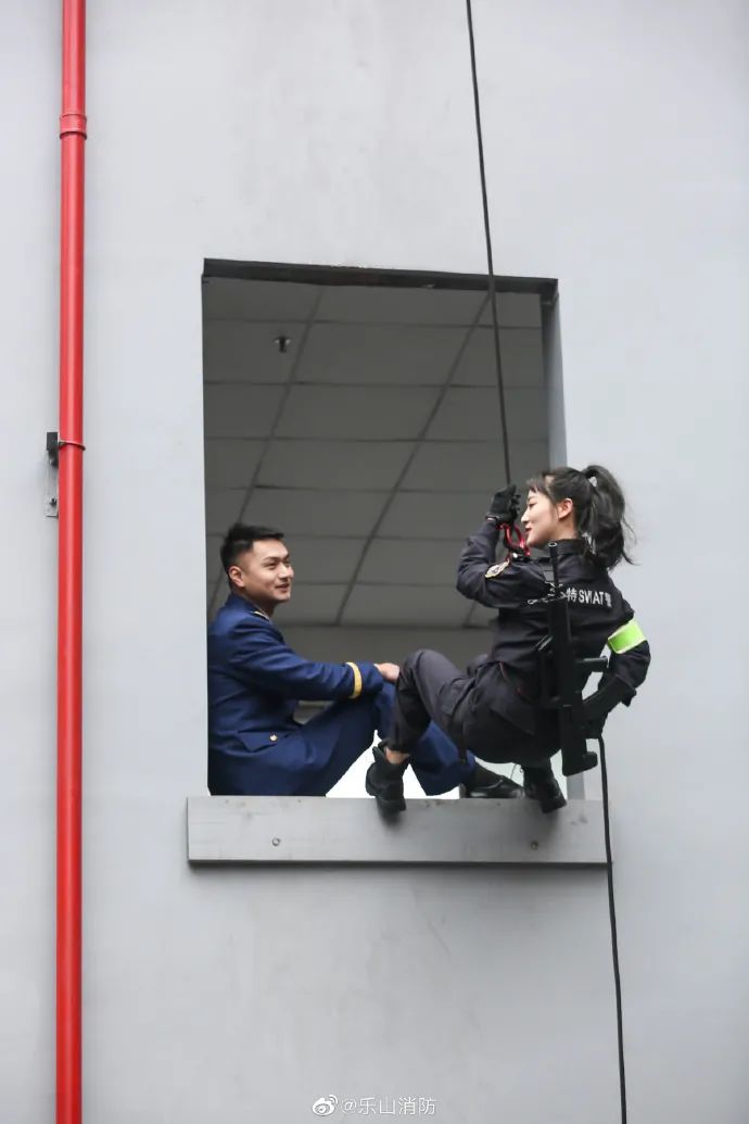 近日,四川樂(lè)山特警王甜甜和消防救援干部魏圣昭,在消防站內(nèi)拍攝了他們的婚紗照,當(dāng)火焰藍(lán)遇到警察藍(lán),安全感拉滿!