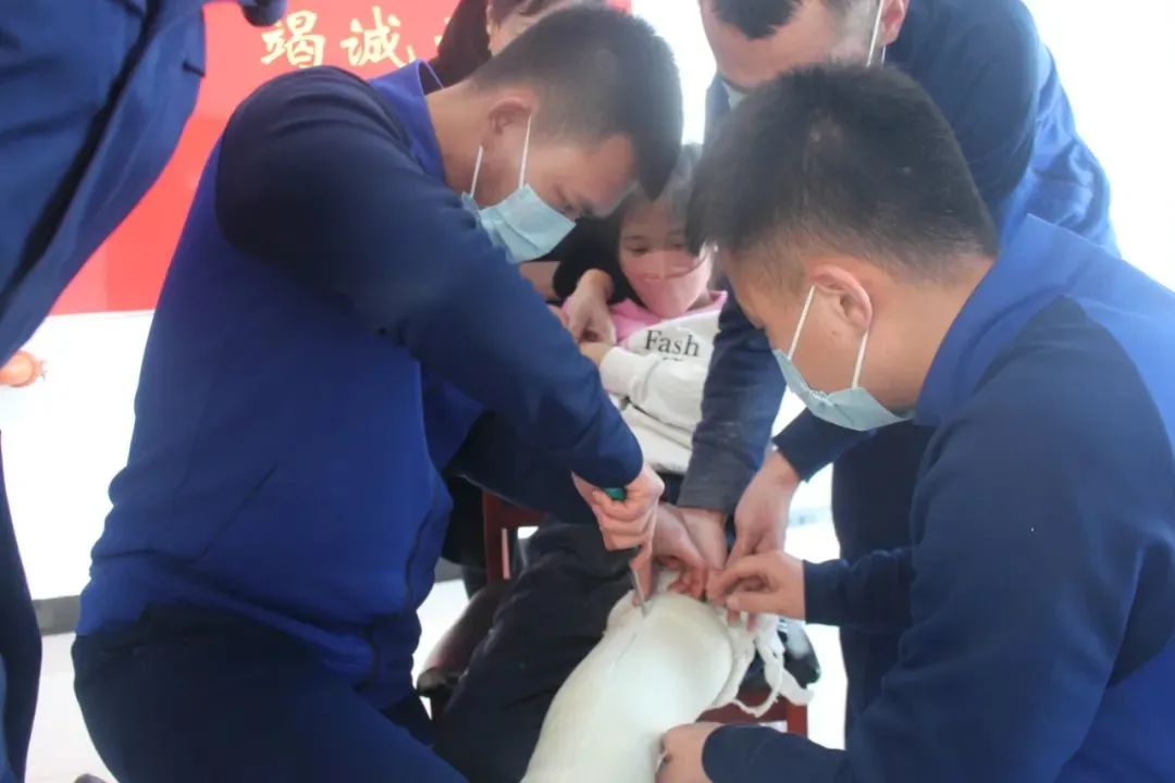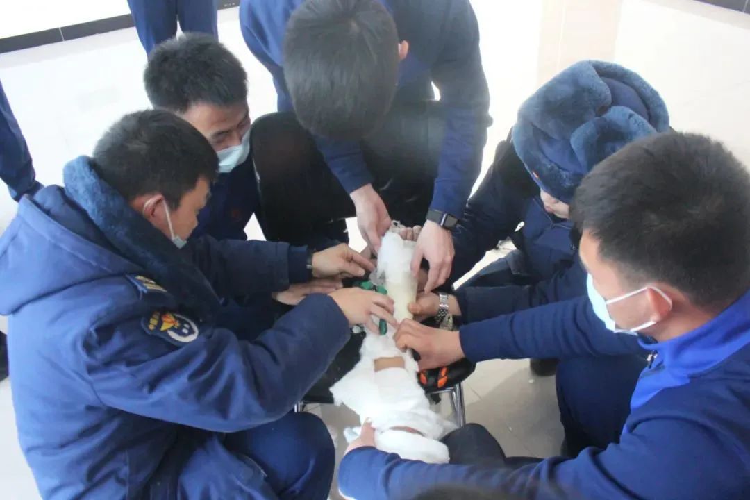 經(jīng)過(guò)約近40分鐘的救援,成功將“附著”在女孩腿部的石膏取下。