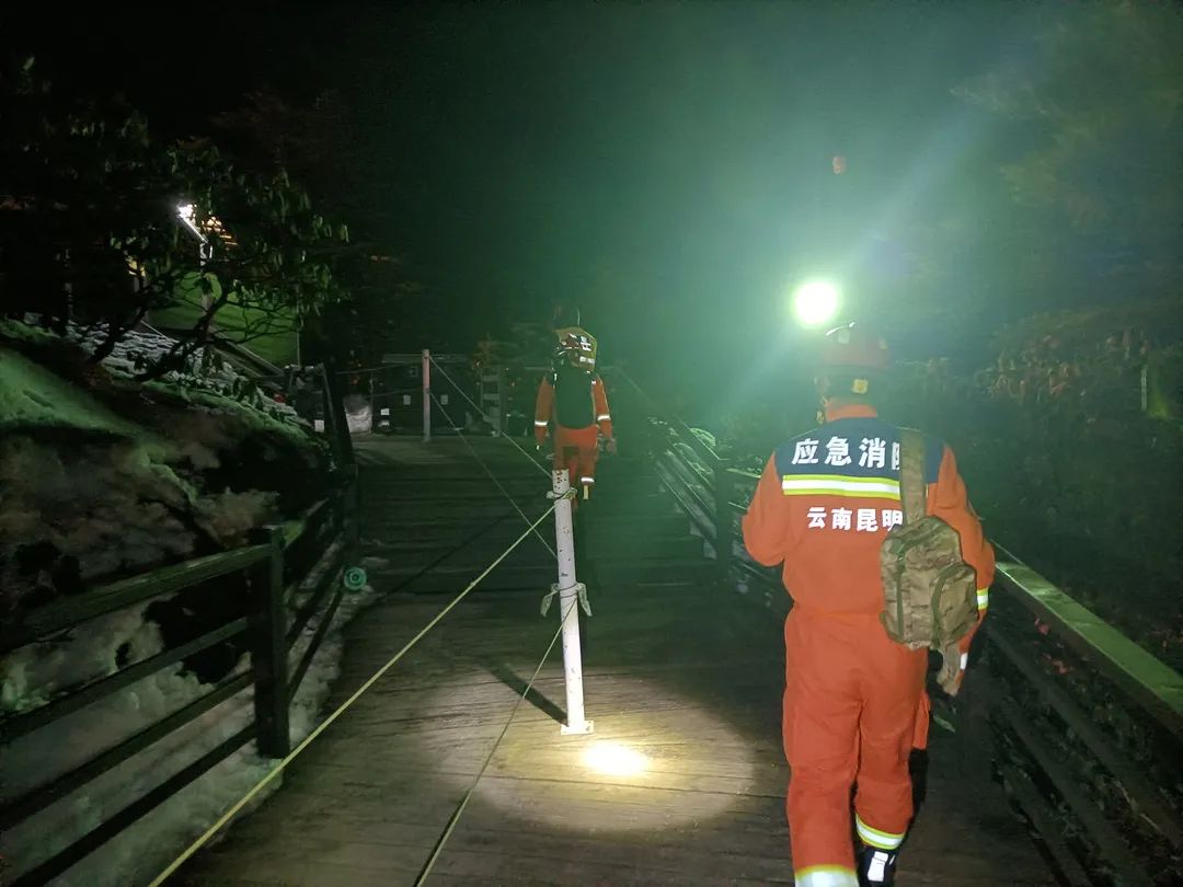22時(shí)04分,消防救援力量到場(chǎng)后,立即分3組聯(lián)合景區(qū)工作人員組織人員搜索轉(zhuǎn)移。