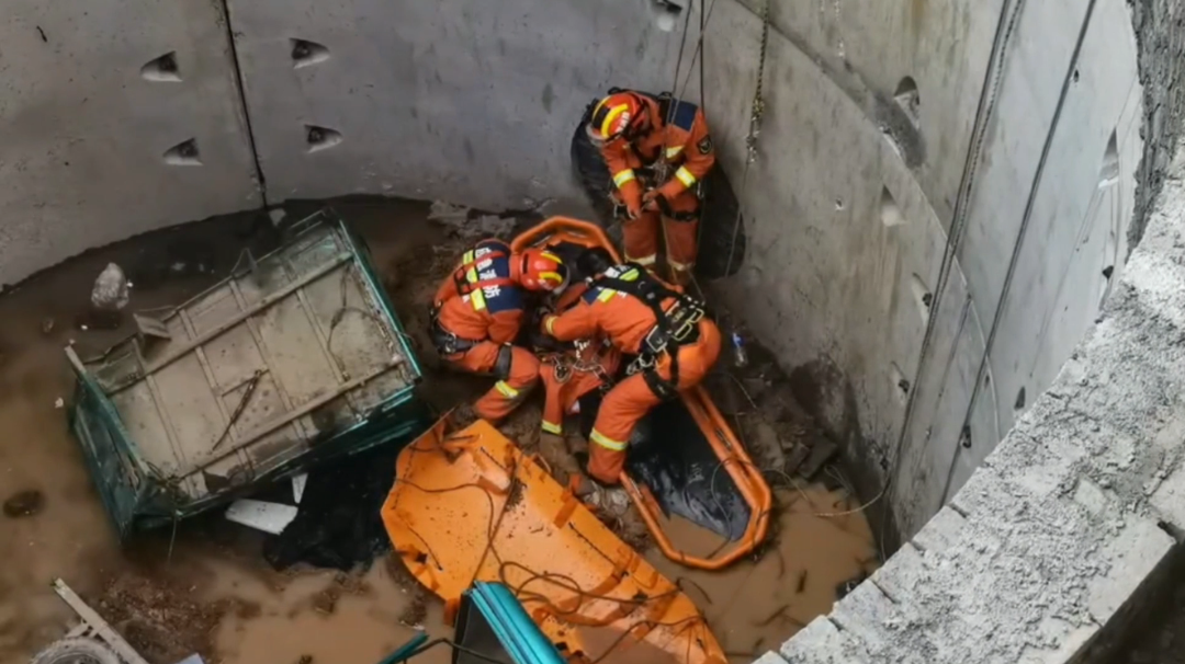 接警后的消防員立即到場,他們發(fā)現(xiàn)施工井直徑約六米、深約十米,經(jīng)過詢問,一名老人并無大礙,但另一名老人腿部被壓在電動三輪車下無法動彈。