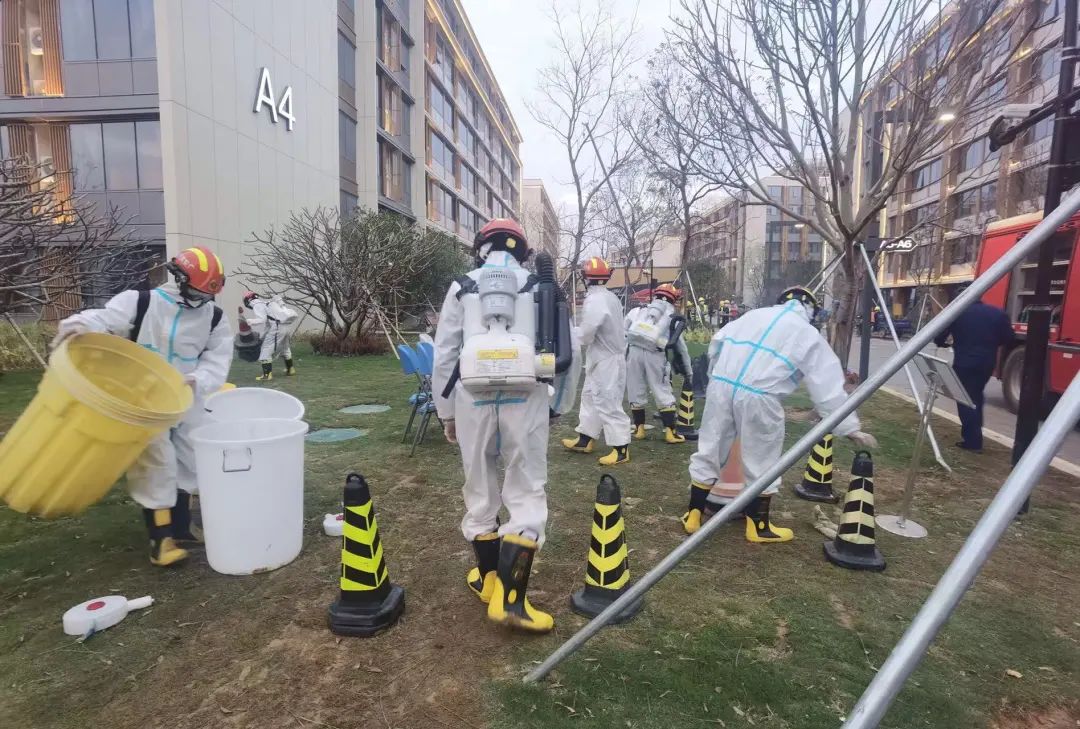 經(jīng)過專業(yè)醫(yī)護人員培訓后,突擊隊員們背負60多斤重的洗消裝備,逐棟逐層逐個房間開展洗消殺毒。經(jīng)過8個小時不間斷奮戰(zhàn),圓滿完成了20余萬平方米的洗消殺毒任務。