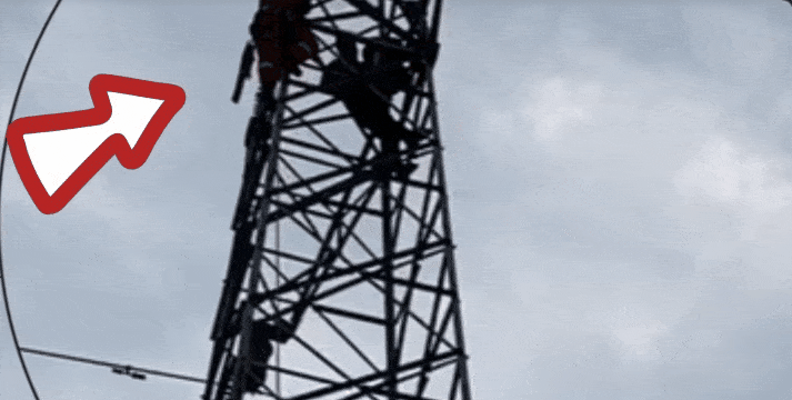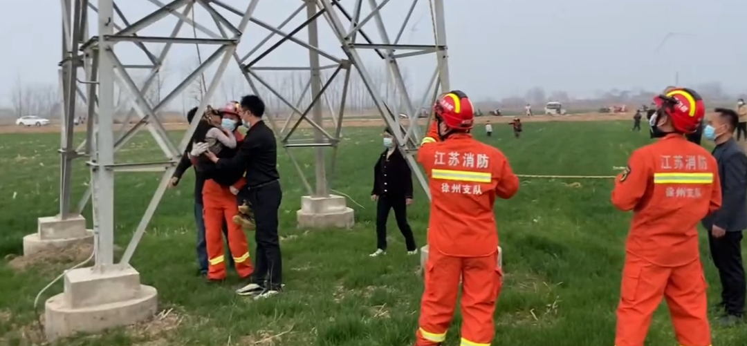近日,江蘇徐州,一“熊孩子”和家人吵架,爬上了約50米高的電塔。