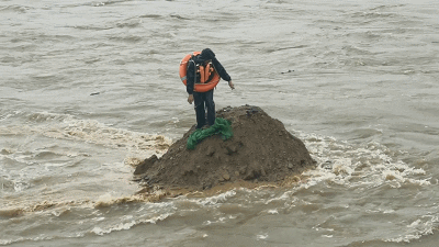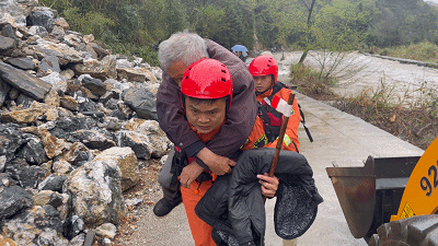 3月16日至3月17日,安徽省池州市普降暴雨,全市多地出現洪澇災害和山體滑坡。在貴池區(qū)梅村鎮(zhèn)高坦大橋河道,5名施工人員被困在河道中央土堆,土堆隨時會被沖垮。