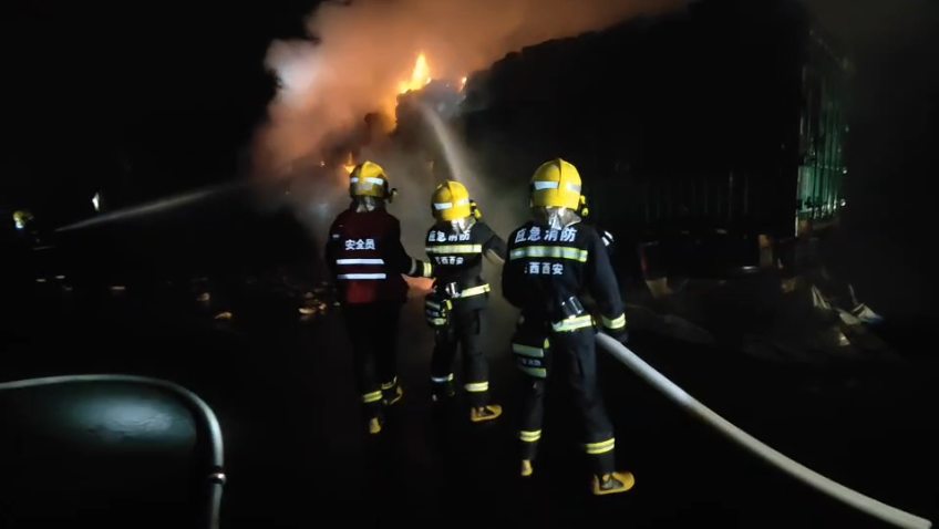 由于部分貨物處于陰燃狀態(tài),為防止火勢(shì)繼續(xù)蔓延,消防救援人員使用水槍?zhuān)掷m(xù)打壓火勢(shì)防止復(fù)燃,25分鐘后,現(xiàn)場(chǎng)處置完畢。