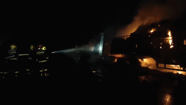 消防員立即對(duì)現(xiàn)場(chǎng)進(jìn)行警戒,同時(shí)架設(shè)兩支水槍從車(chē)廂兩側(cè),對(duì)火勢(shì)進(jìn)行壓制,40分鐘后,明火被撲滅。