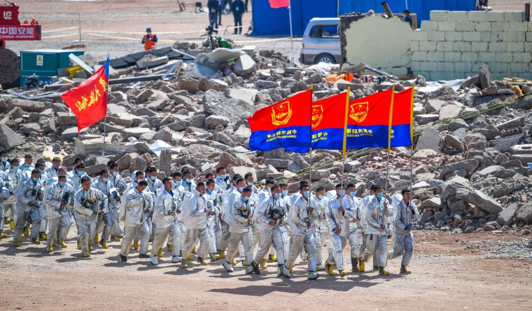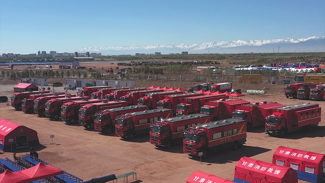 演習(xí)假設(shè)張掖市發(fā)生7.5級(jí)“地震”,波及多地,大批房屋倒塌損毀,大量人員埋壓被困,并造成多重次生災(zāi)害。甘肅和北京、內(nèi)蒙古、山東、四川、云南、西藏、陜西、青海、寧夏、新疆等地消防救援隊(duì)伍迅速響應(yīng)集結(jié),全力投入救援。