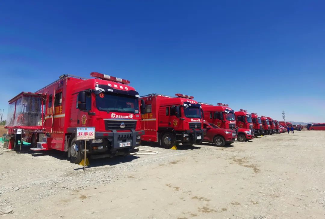 共調(diào)派包括通信指揮車、大功率泡沫消防車、水罐消防車、高噴消防車、遠(yuǎn)程供水消防車、搶險(xiǎn)救援消防車、宿營(yíng)車、餐飲車等各類型消防車輛411輛。