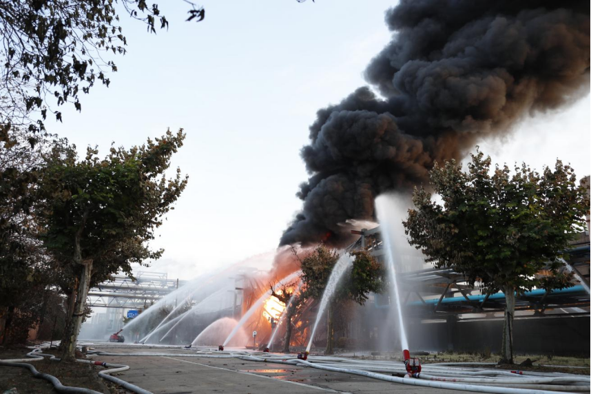 據(jù)廠方測(cè)算,燃燒管道內(nèi)部殘余物約1000余噸?,F(xiàn)場(chǎng)指揮部按照“工藝處置措施與消防技戰(zhàn)術(shù)相結(jié)合”的處置原則,第一時(shí)間組織精干力量配合企業(yè)技術(shù)團(tuán)隊(duì)關(guān)閥斷料,出動(dòng)10余臺(tái)滅火機(jī)器人近距離打擊火勢(shì)、冷卻保護(hù)周邊易燃易爆化學(xué)品儲(chǔ)罐?,F(xiàn)場(chǎng)消防救援人員冒著灼人熱浪和刺鼻氣味,全力阻擊火勢(shì),4個(gè)火點(diǎn)有3個(gè)被迅速撲滅。指揮部實(shí)時(shí)調(diào)整救援方案,組織力量對(duì)猛烈燃燒的衛(wèi)五北路1處火點(diǎn)采取分段工藝處置措施。