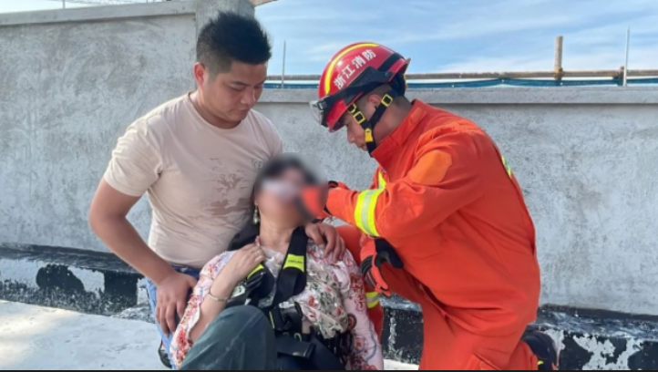 在樓頂平臺上,消防員依照120醫(yī)護人員的囑咐,給被困人員喂食生理鹽水,待其身體狀況有所好轉(zhuǎn)后,便使用云梯車將其安全轉(zhuǎn)移到地面,送往醫(yī)院救治。