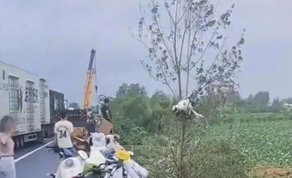 大風(fēng)將村民房屋屋頂掀翻,電線桿刮倒。高速公路上的貨車也被刮翻,車上裝載的幾十輛電動(dòng)車被刮到高架橋下。