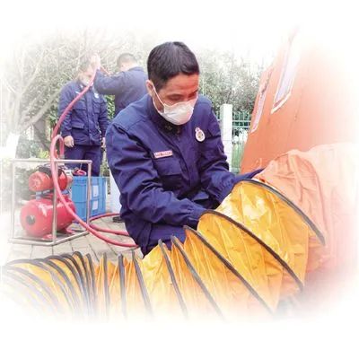 他和隊(duì)友趴在罐口,順著水線在水帶上找到一個(gè)芝麻大的漏點(diǎn),迅速補(bǔ)救,成功排除隱患。此時(shí),臉上的污水已經(jīng)順著口罩和護(hù)目鏡邊沿往下流。