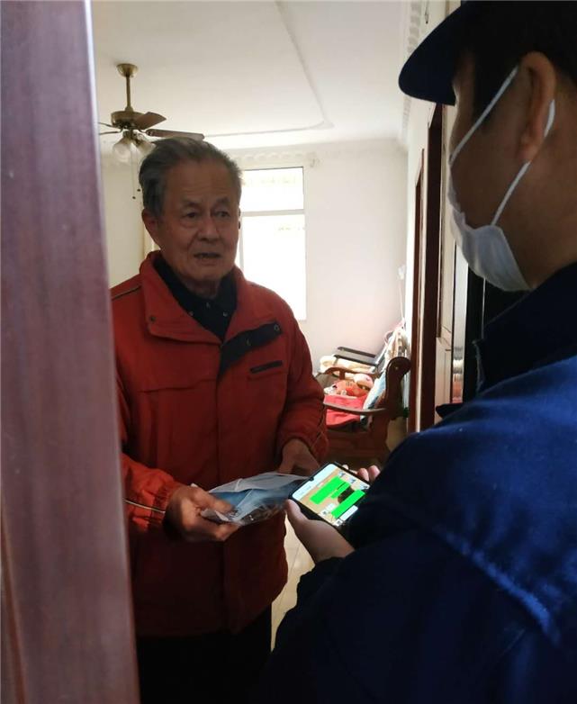 見此情況,康靖將隨車攜帶的50支口罩和兩瓶酒精送給老人,并教授老人使用方法。隨后,通過社區(qū)團購群幫助老人購買蔬菜、肉類等生活物資,老人拉著他的手連聲說:“小伙子,你們真好!”