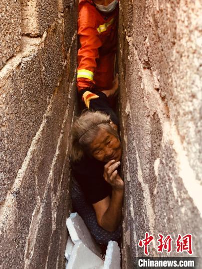 [中國(guó)新聞網(wǎng)]廣西桂林:九旬老人被卡30厘米墻縫 消防緊急營(yíng)救