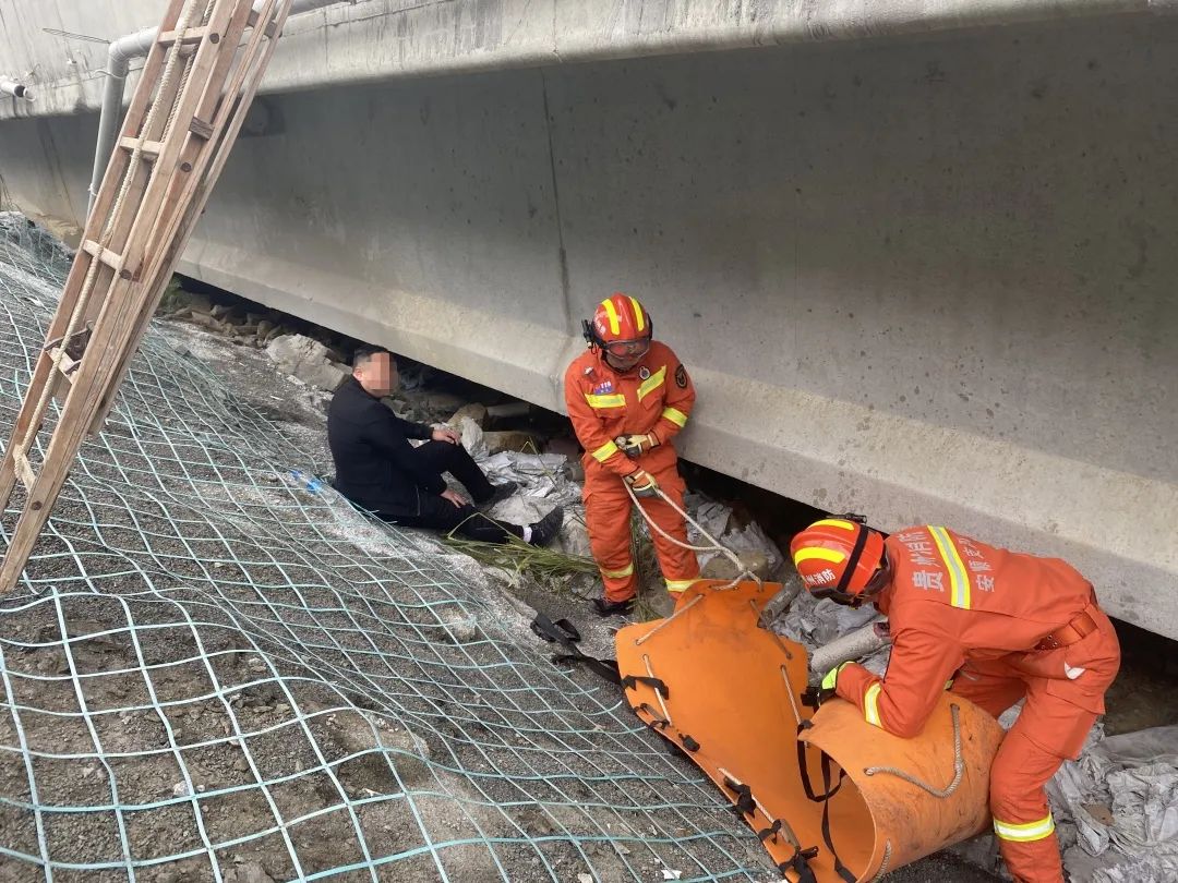 近日,貴州赤望高速上,一男子因內(nèi)急停車“方便”,因撿拾掉落的手機(jī),摔到橋下,右腿受傷無法站立,只能撥打119求助消防。