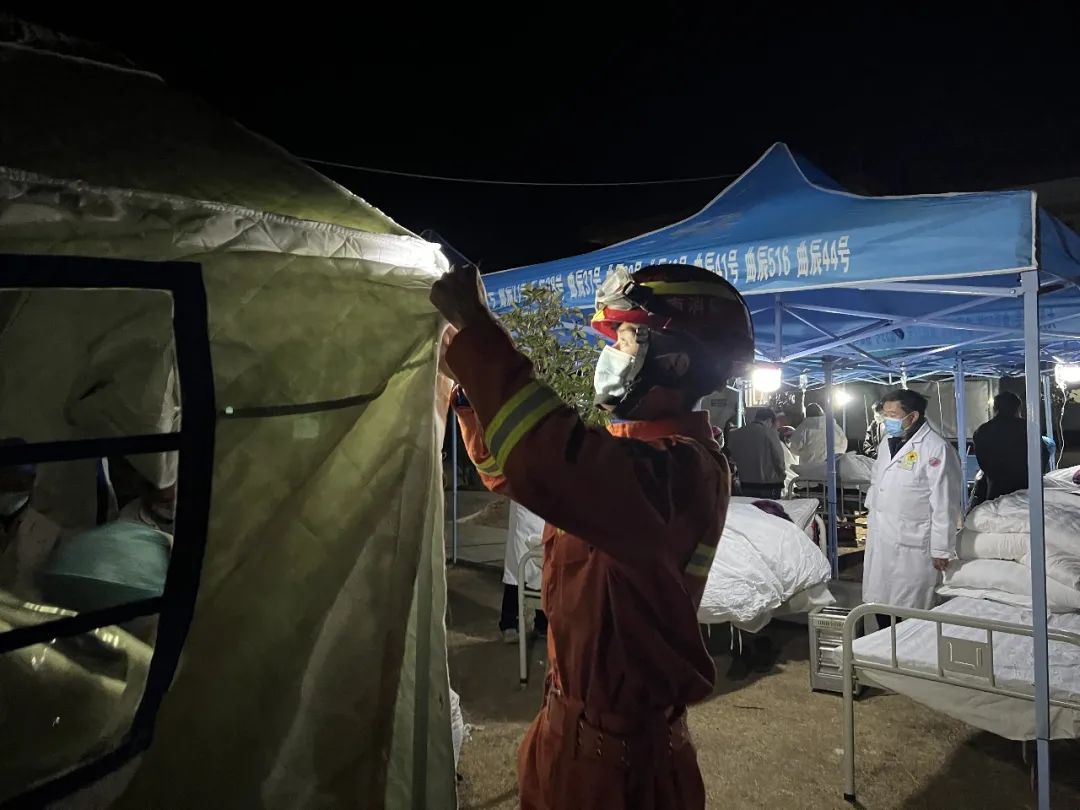 在永寧鎮(zhèn)受災現(xiàn)場設置的7個臨時安置點中,消防救援人員協(xié)助搭建安置帳篷56頂,現(xiàn)場準備滅火器60具,發(fā)放消防安全宣傳手冊500余份,派出消防監(jiān)督人員開展防火巡查和消防安全提醒。